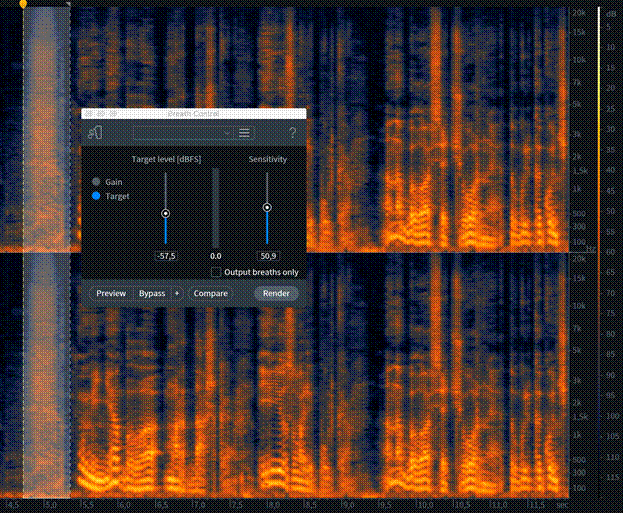 • Strength (сила) - регулирует, насколько агрессивно Spectral Repair ослабляет звук. Если вы установите силу низком уровне, то некоторые шумы могут быть по-прежнему слышны. Если вы установите ее слишком высоко, то можете услышать «дыру» в звуке в точке восстановления. Необходимо найти хороший баланс между этими двумя значениями для достижения наилучшего результата.