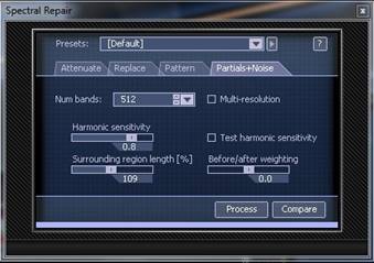 Этот режим ищет шаблон в окружающем материале и использует его, чтобы заменить. Особенно полезен для пробелов и сильно поврежденных разделов аудио. Можете попробовать использовать Pattern режим для художественной обработки, например для барабанных треков. Он может творить чудеса.