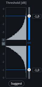 Между регуляторами порога для верхней и нижней полуволн расположена кнопка Link . По умолчанию она включена, поэтому верхний и нижний порог изменяются синхронно. При отключении Link верхний и нижний пороги настраиваются независимо друг от друга. Такой режим полезен если амплитуды положительных и отрицательных полуволн несимметричны и имеют разный уровень перегрузки.