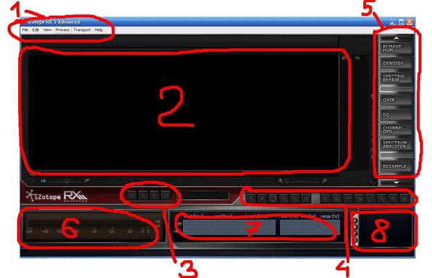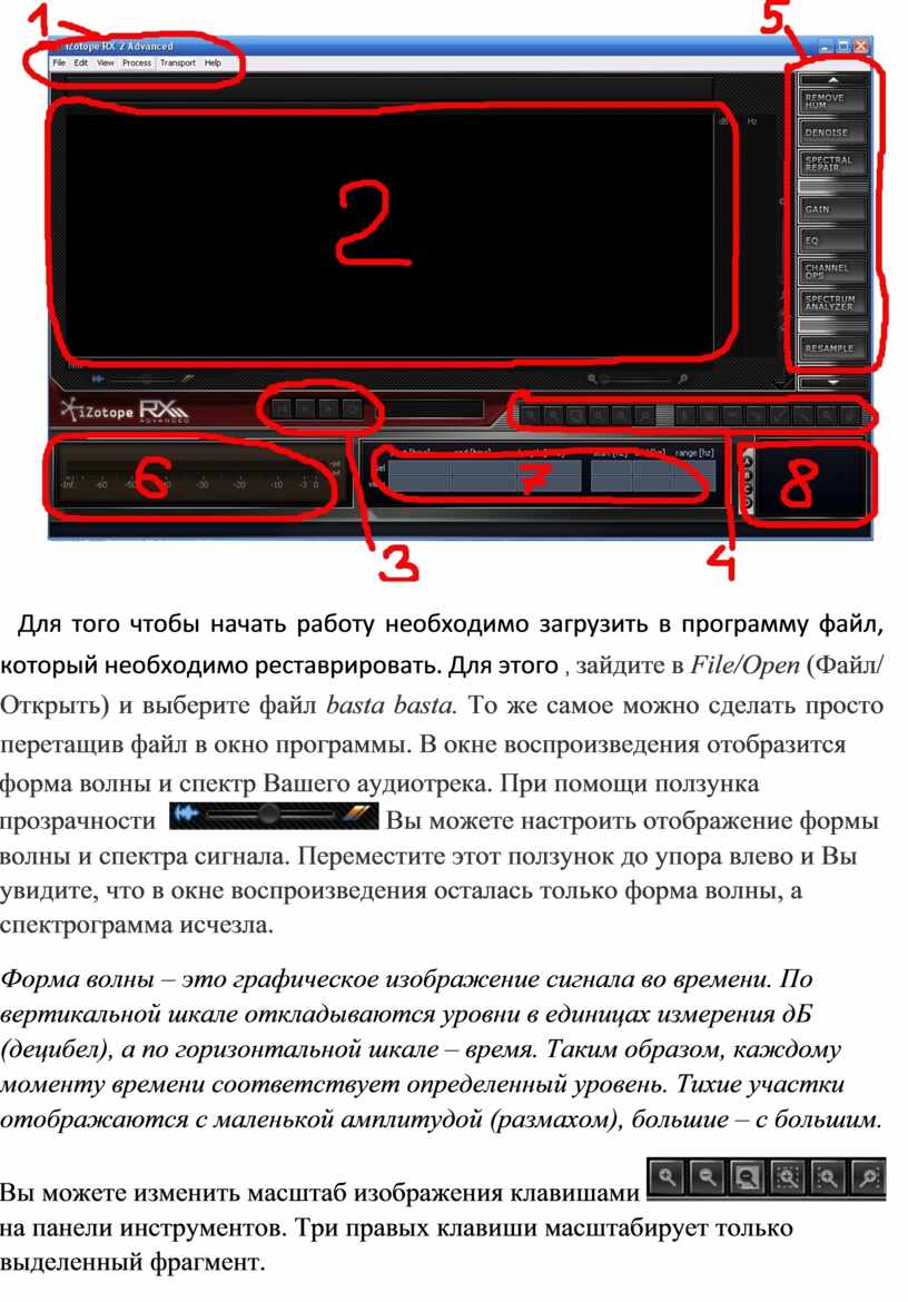 5) Панель модулей реставрации – содержит кнопки выбора различных модулей для реставрации аудиофайлов.