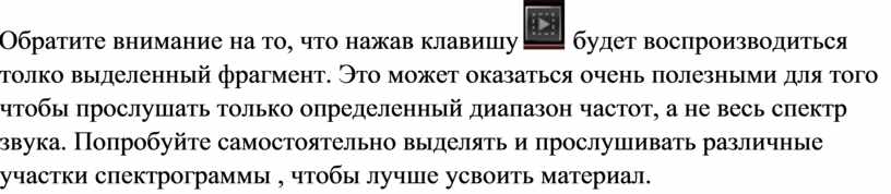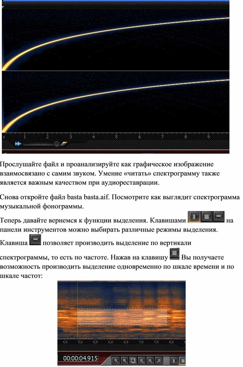 выделять и прослушивать различные участки спектрограммы , чтобы лучше усвоить