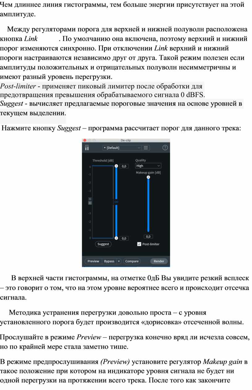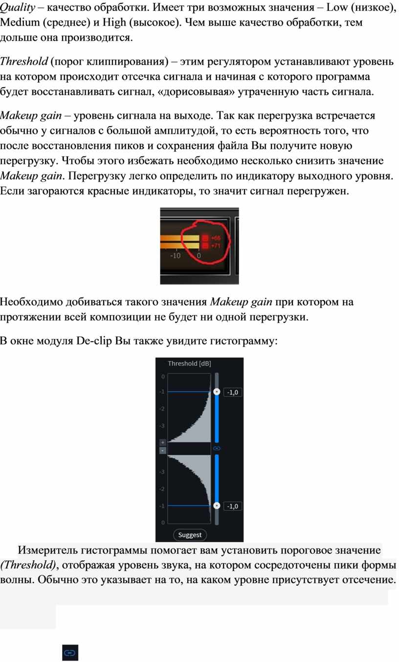 Threshold (порог клиппирования) – этим регулятором устанавливают уровень на котором происходит отсечка сигнала и начиная с которого программа будет восстанавливать сигнал, «дорисовывая» утраченную часть сигнала.