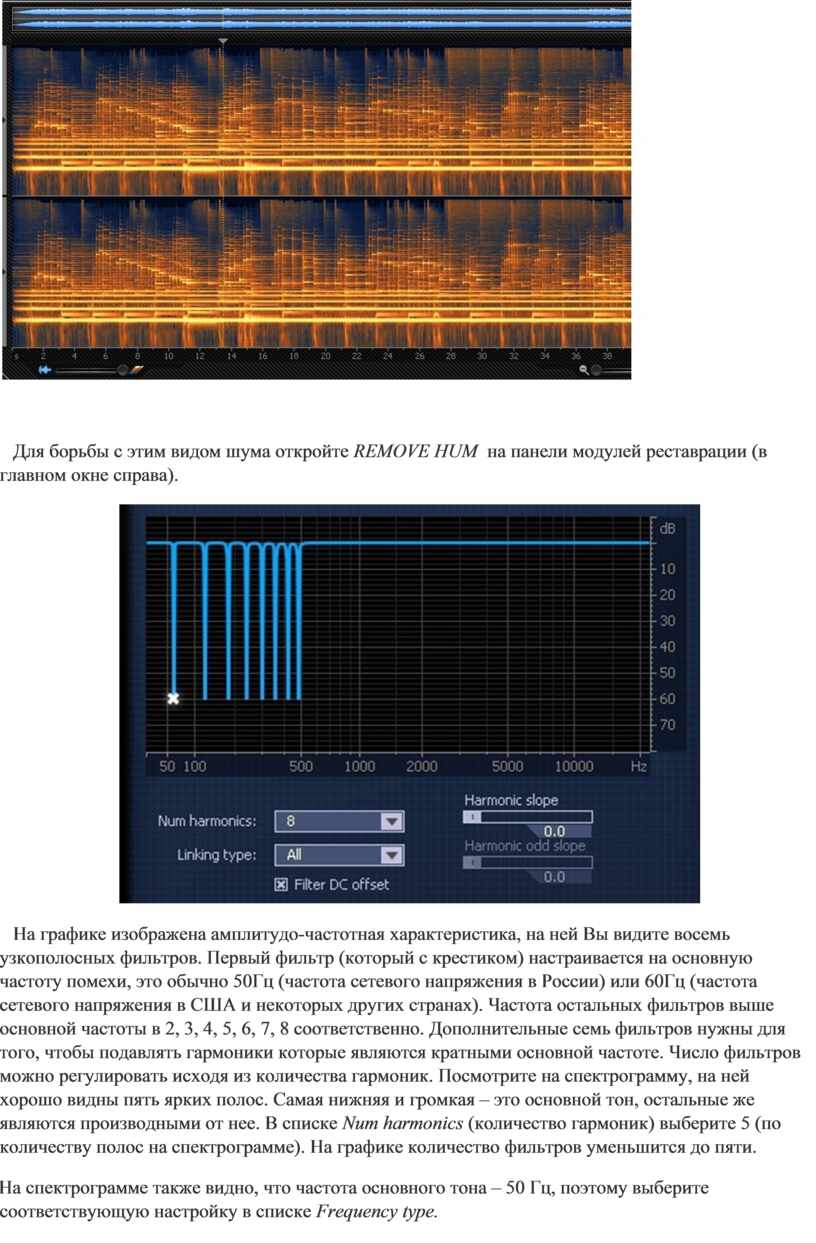 В подобных ситуациях, например, когда имеется несколько гармоник, хорошим инструментом для работы может оказаться Hum Removed. Он позволяет установить основную частоту шума и регулировать подавление до 7 верхних гармоник.