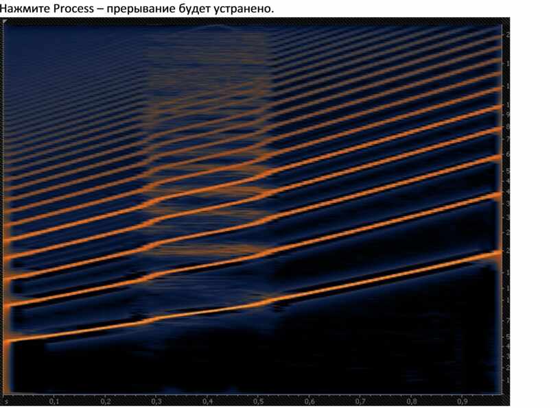 Нажмите Render. Прослушайте еще раз участок, на котором присутствовал гул. Если Вы все сделали правильно, то гул исчез. В противном случае отмените действие и проверьте настройки. Также внимательно посмотрите участок выделения, если Вы выделили гармоники впритык, то это может являться причиной неполного шумоподавления. Попробуйте несколько расширить границы выделения вокруг гармоник, после чего снова нажмите кнопку Render.
