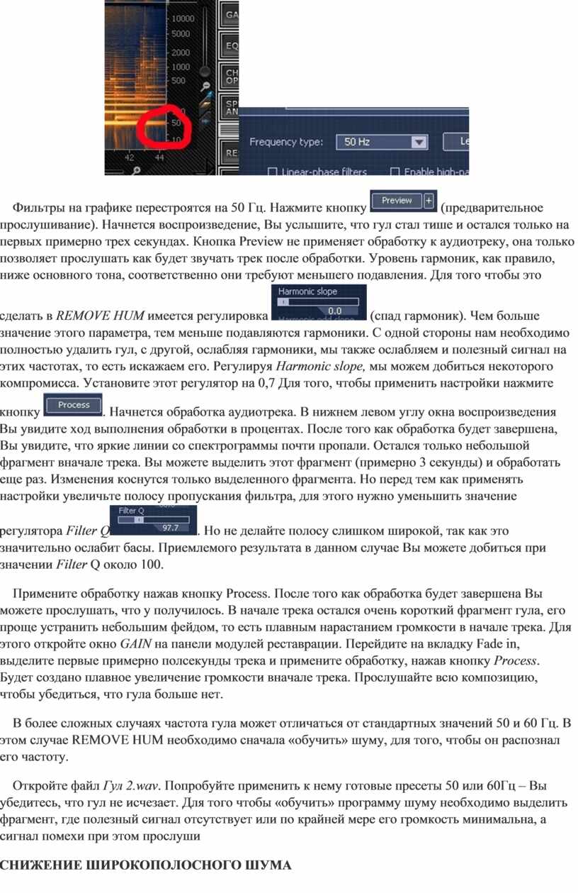 De-Hum может дать результаты значительно лучше, но автоматическое определение частоты Suggest может в некоторых случаях не сработать, если амплитуда сигнала обратной связи будет небольшой, кроме того, если частота «завязки» меняется, то этот способ не сработает. Рассмотрим вариант с ручным устранением шума, который возможно и потребует немного больше времени, но зато позволит более точно справиться с задачей.