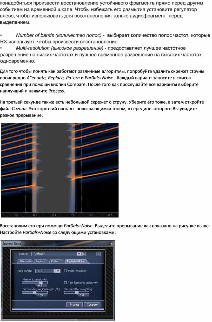 Для того чтобы понять как работают различные алгоритмы, попробуйте удалить скрежет струны поочередно A"enuate, Replace, Pa"ern и Par0als+Noise . Каждый вариант заносите в список сравнения при помощи кнопки Compare. После того как прослушайте все варианты выберите наилучший и нажмите Process.