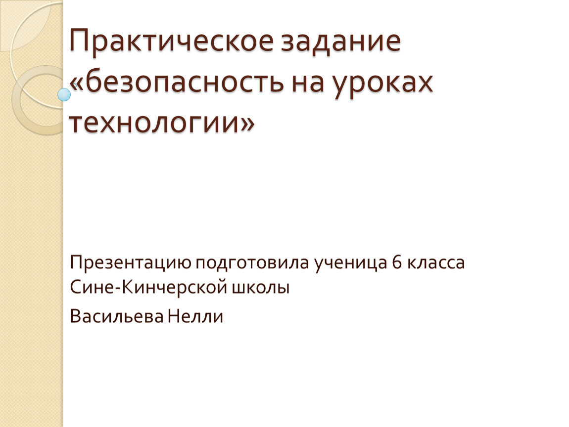 Практическое задание«безопасность на уроках технологии»
