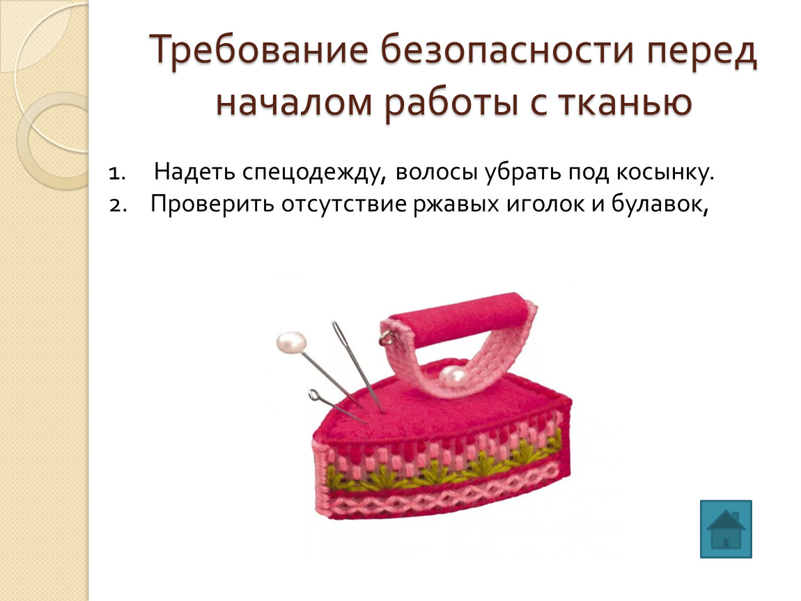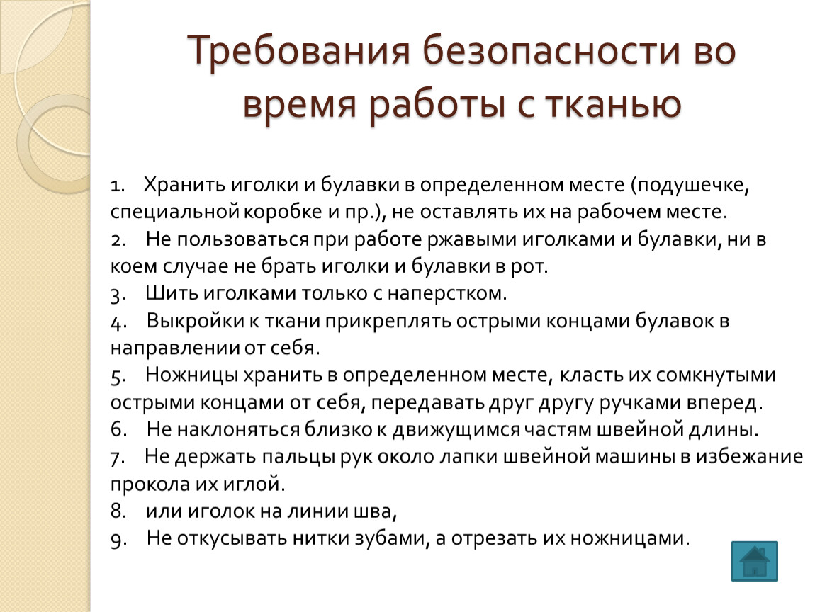 Требование безопасности перед началом работы с тканью