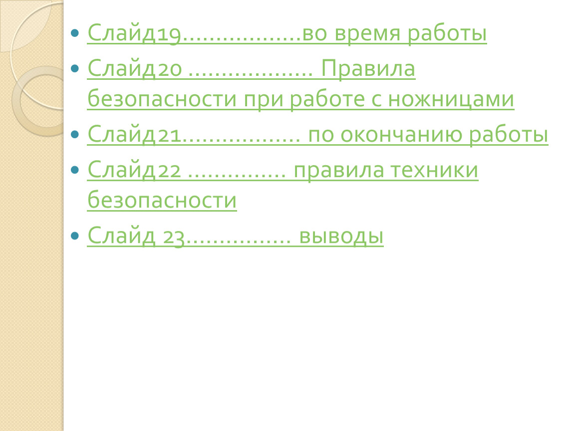 Слайд20 ………………. Правила безопасности при работе с ножницами