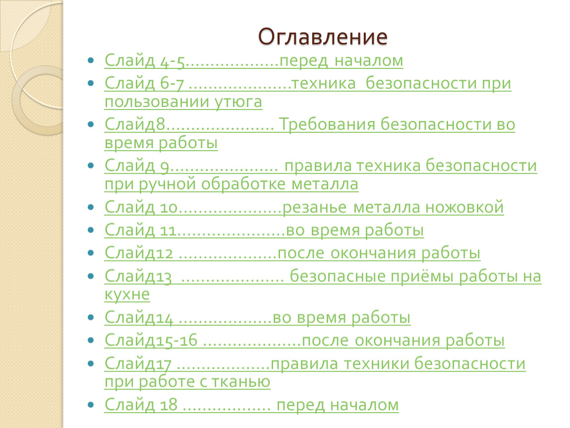 Слайд17 ……………….правила техники безопасности при работе с тканью