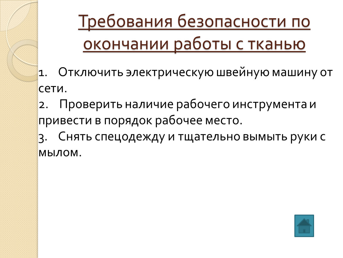 Требования безопасности по окончании работы с тканью