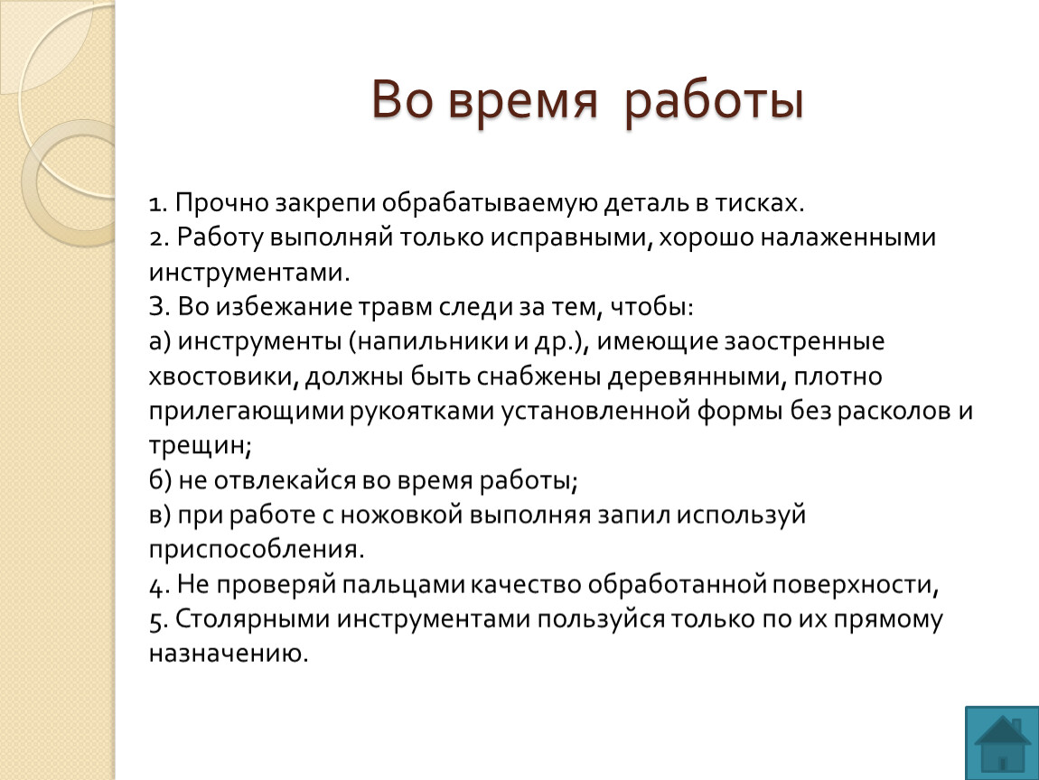 5. Столярными инструментами пользуйся только по их прямому назначению.
