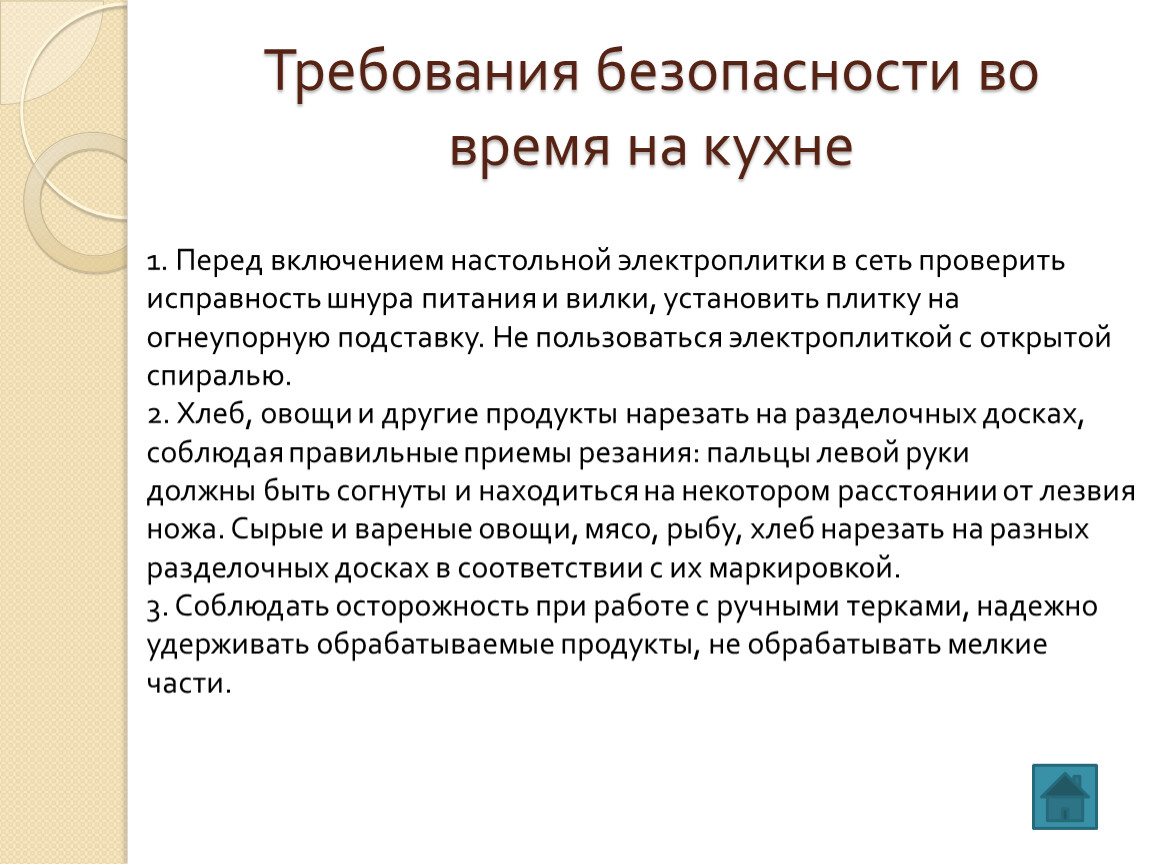 Требования безопасности во время на кухне