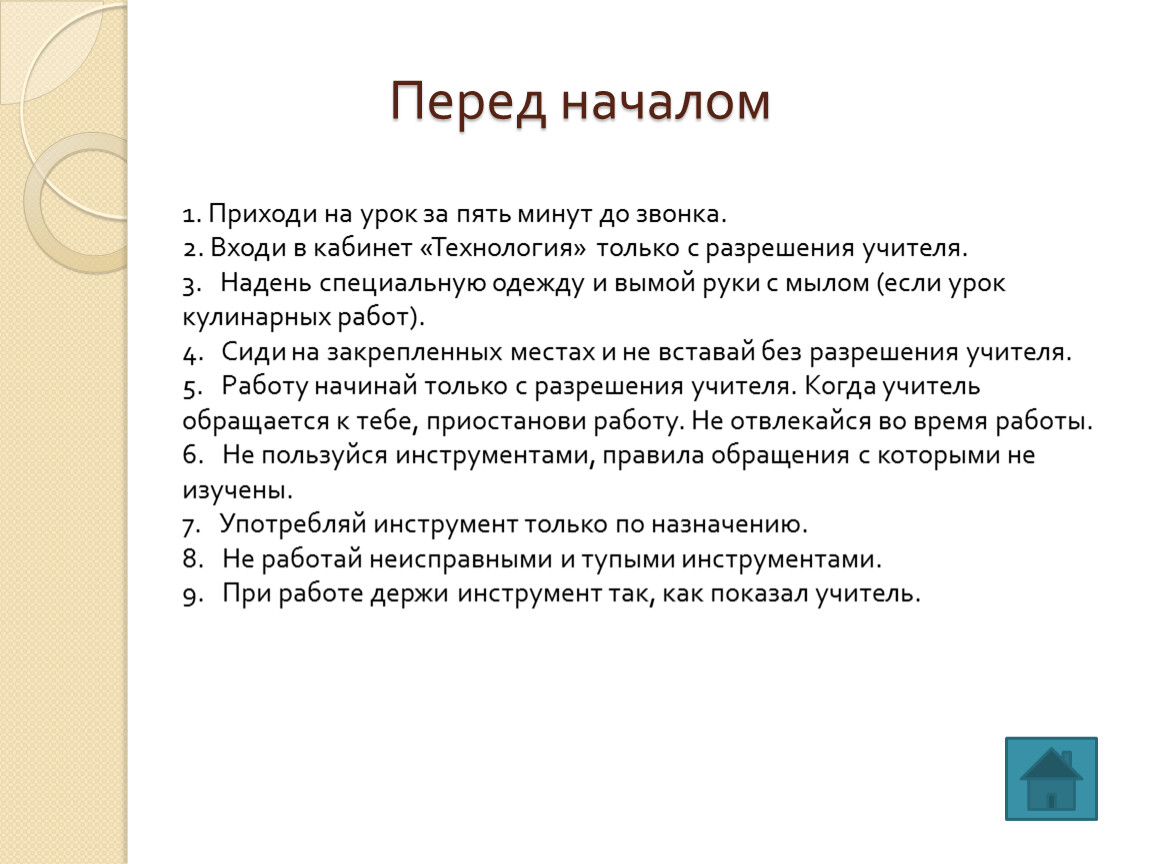 2. Входи в кабинет «Технология» только с разрешения учителя.