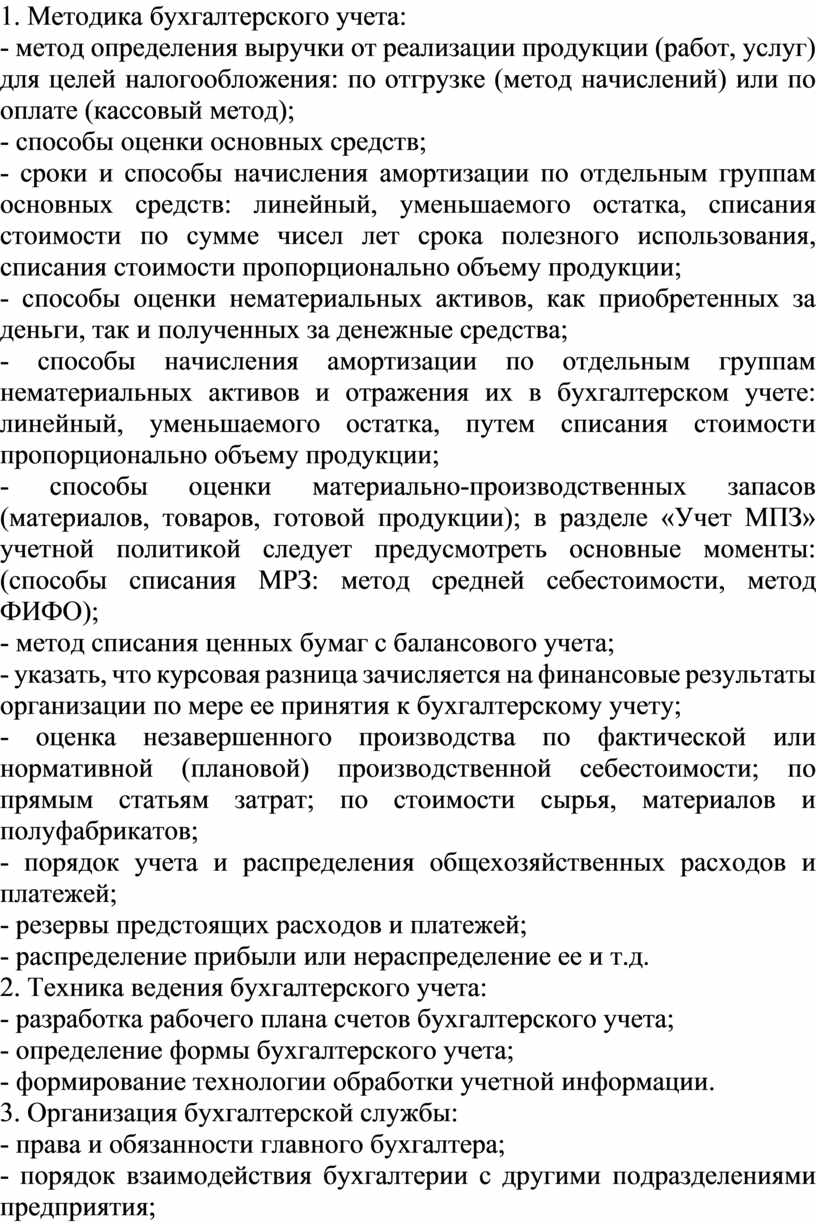 Задание 1. В учетной политике организации отражаются следующие направления: