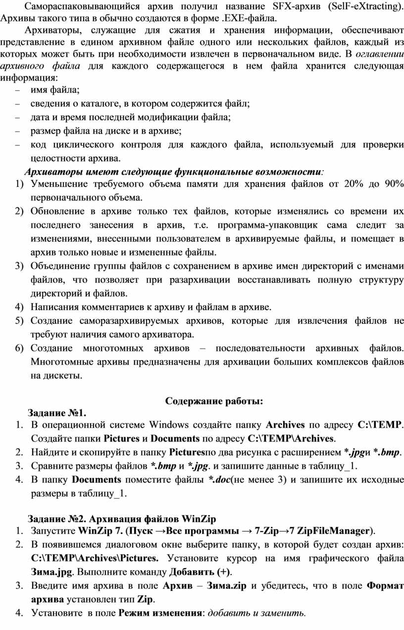 5) Создание саморазархивируемых архивов, которые для извлечения файлов не требуют наличия самого архиватора.