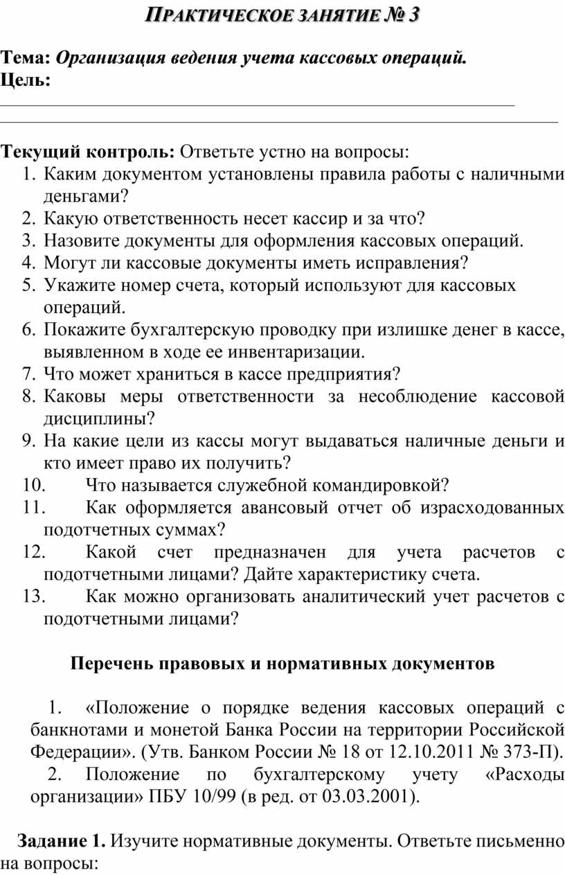 1. «Положение о порядке ведения кассовых операций с банкнотами и монетой Банка России на территории Российской Федерации». (Утв. Банком России № 18 от 12.10.2011 № 373-П).