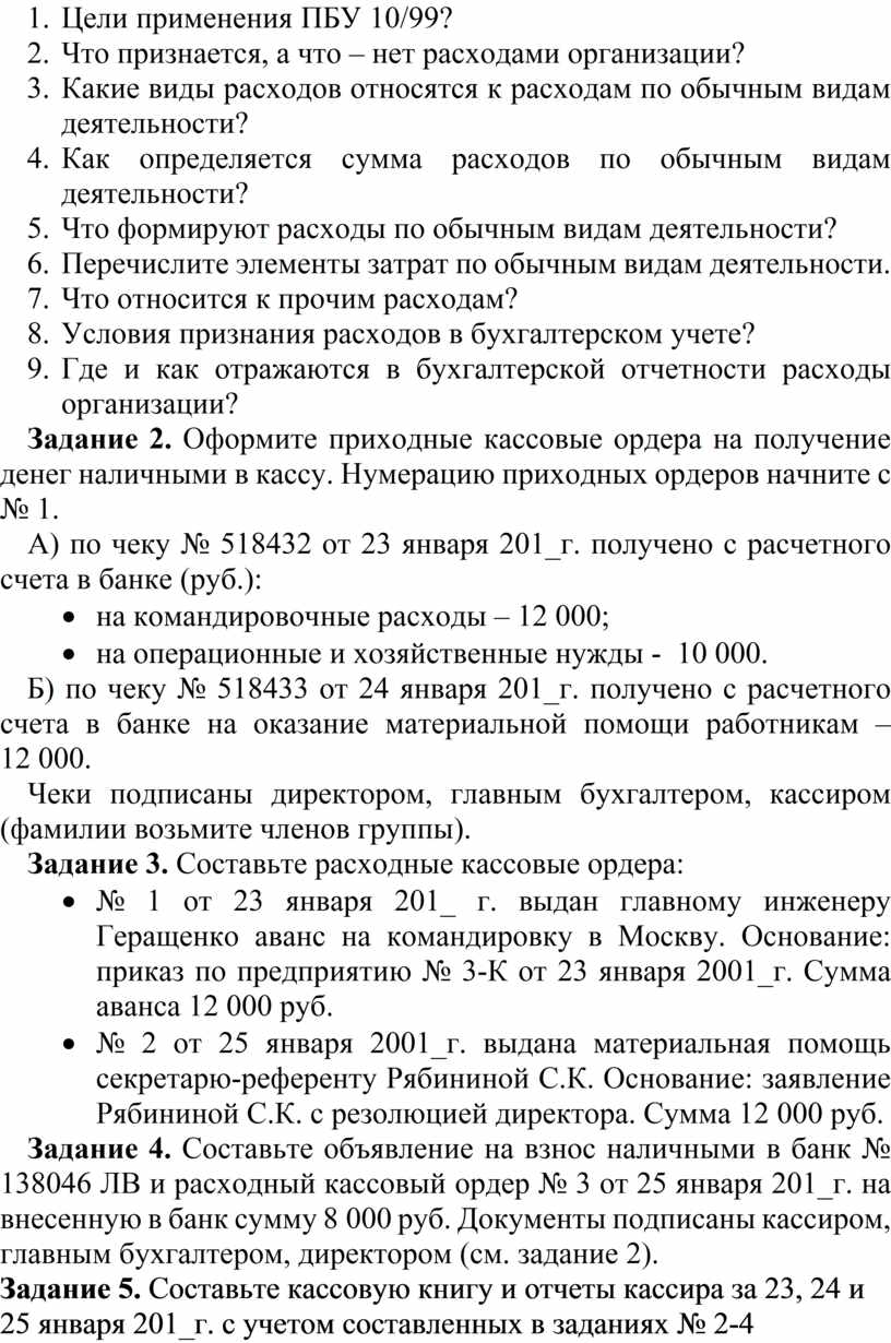 2. Положение по бухгалтерскому учету «Расходы организации» ПБУ 10/99 (в ред. от 03.03.2001).
