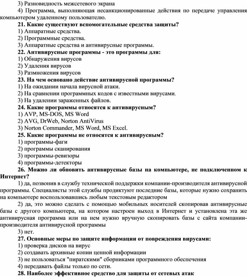 Тест по теме «Защита информации, антивирусная защита»