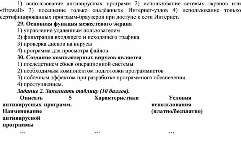 Задание тест 30 баллов