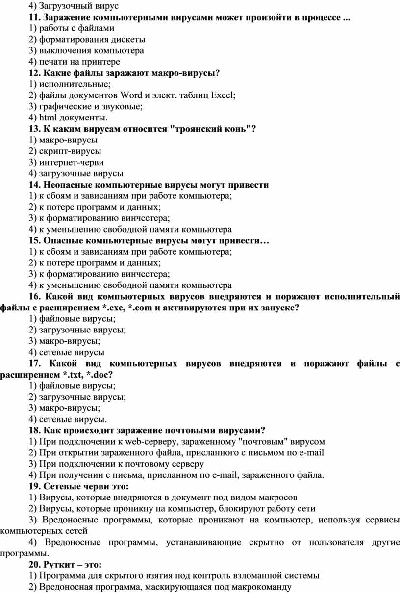 8. Назовите основные типы компьютерных вирусов: