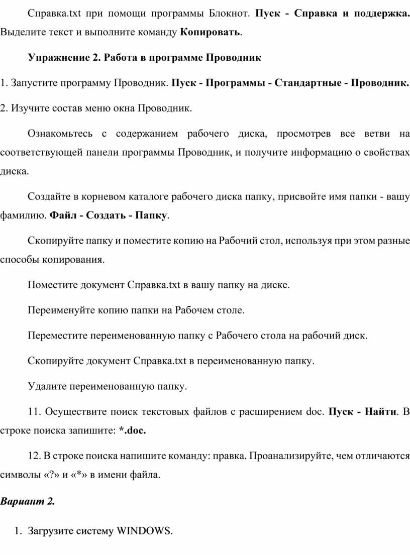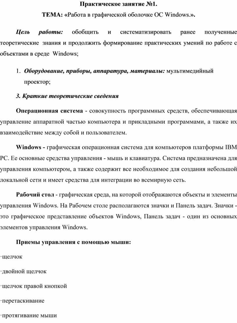 Цель работы: обобщить и систематизировать ранее полученные теоретические знания и продолжить формирование практических умений по работе с объектами в среде Windows;