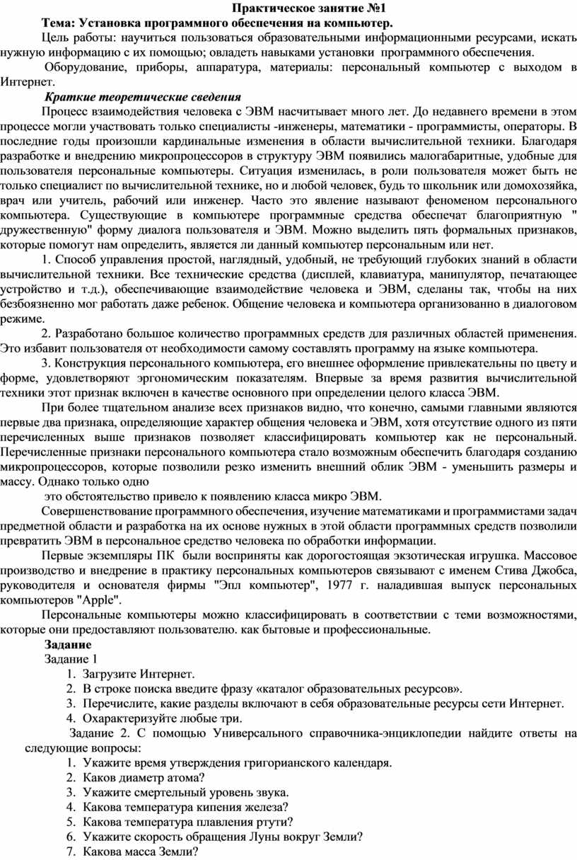 Цель работы: научиться пользоваться образовательными информационными ресурсами, искать нужную информацию с их помощью; овладеть навыками установки программного обеспечения.