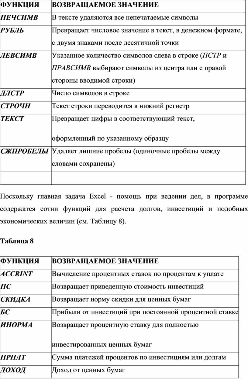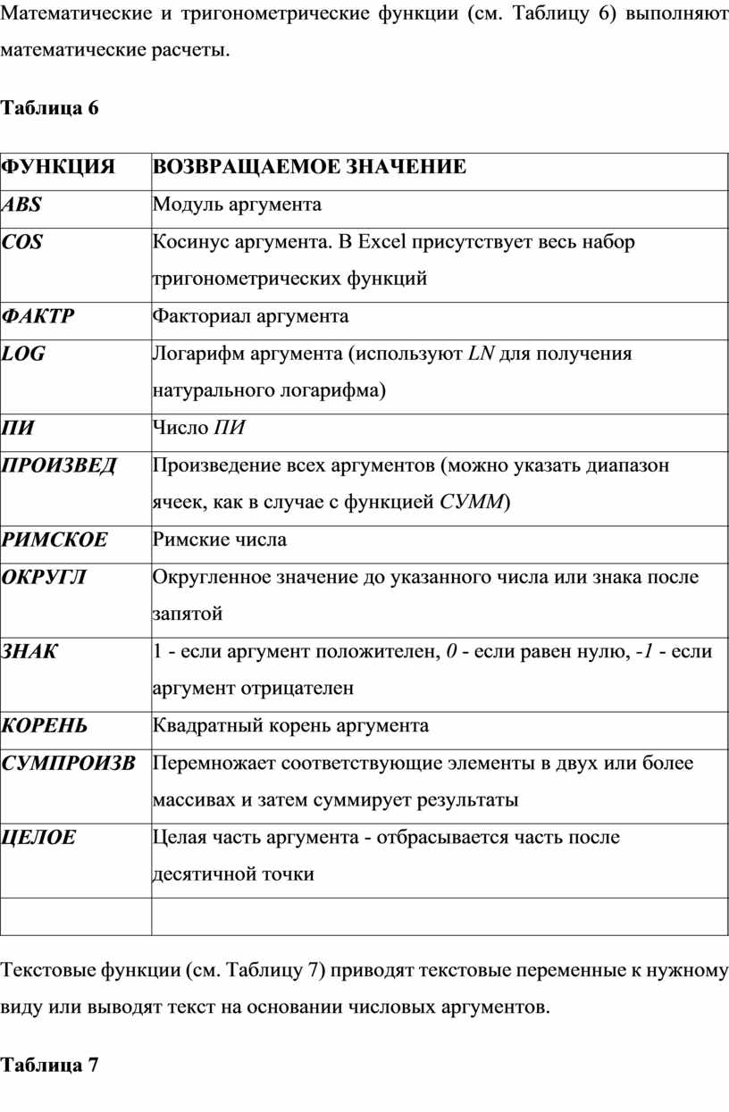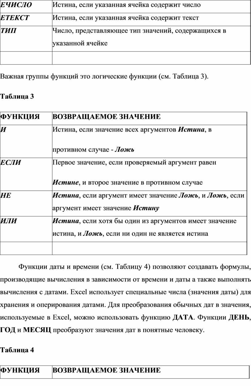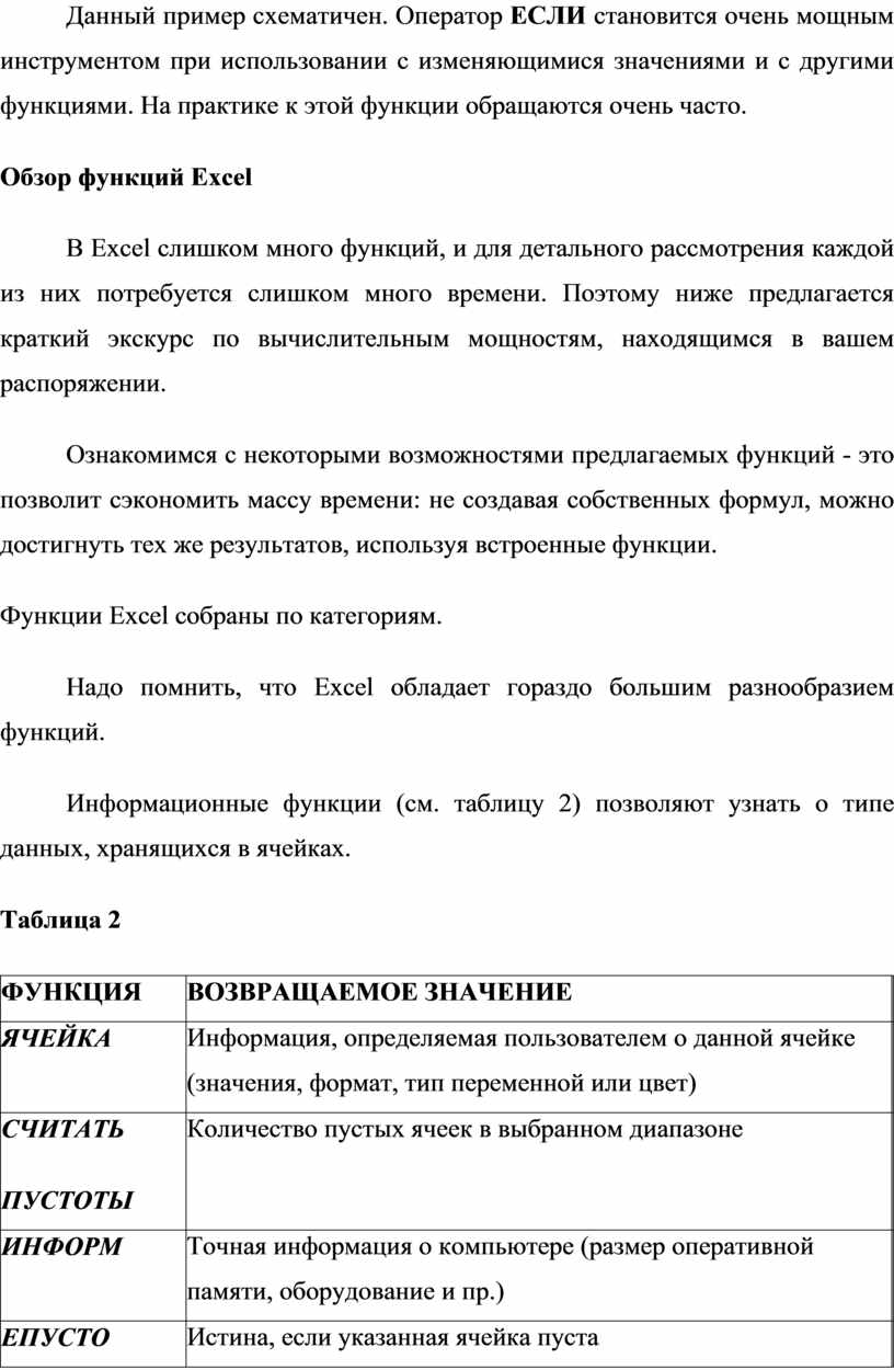 Информационные функции (см. таблицу 2) позволяют узнать о типе данных, хранящихся в ячейках.