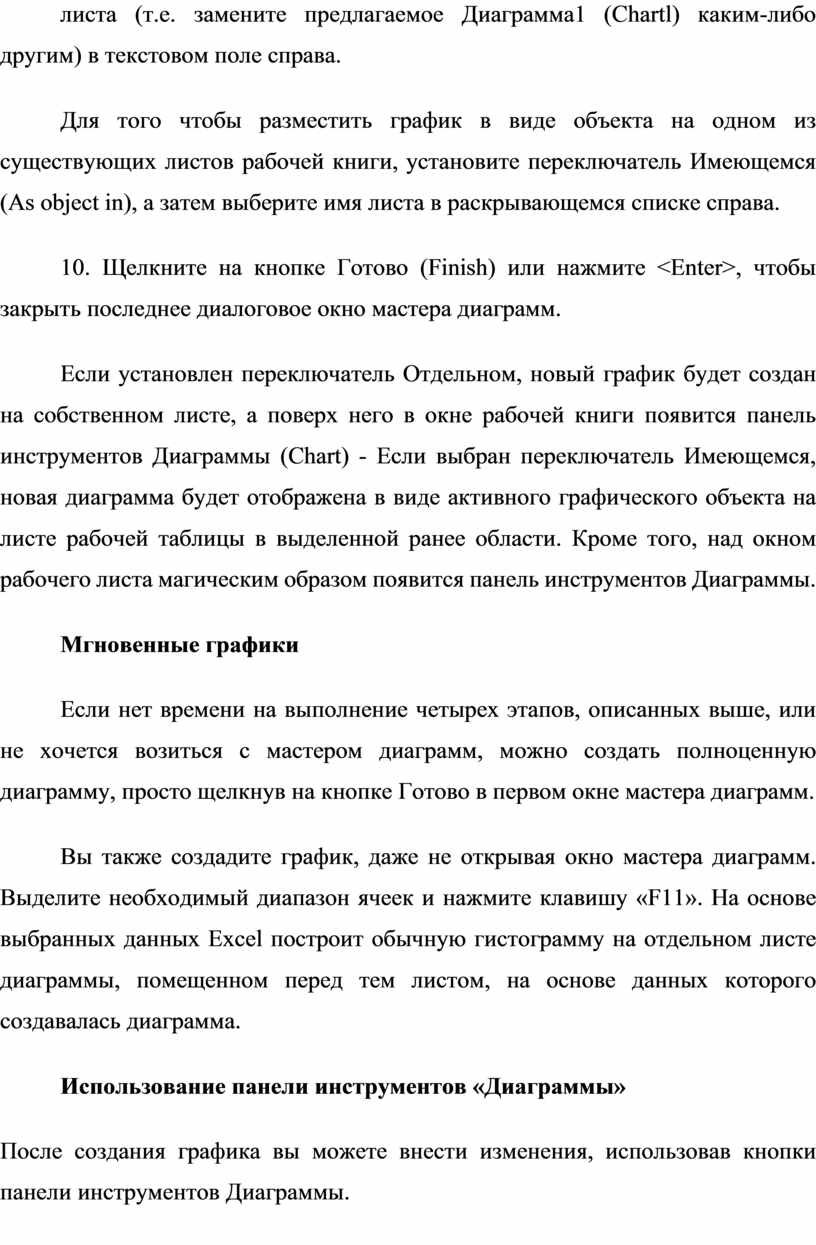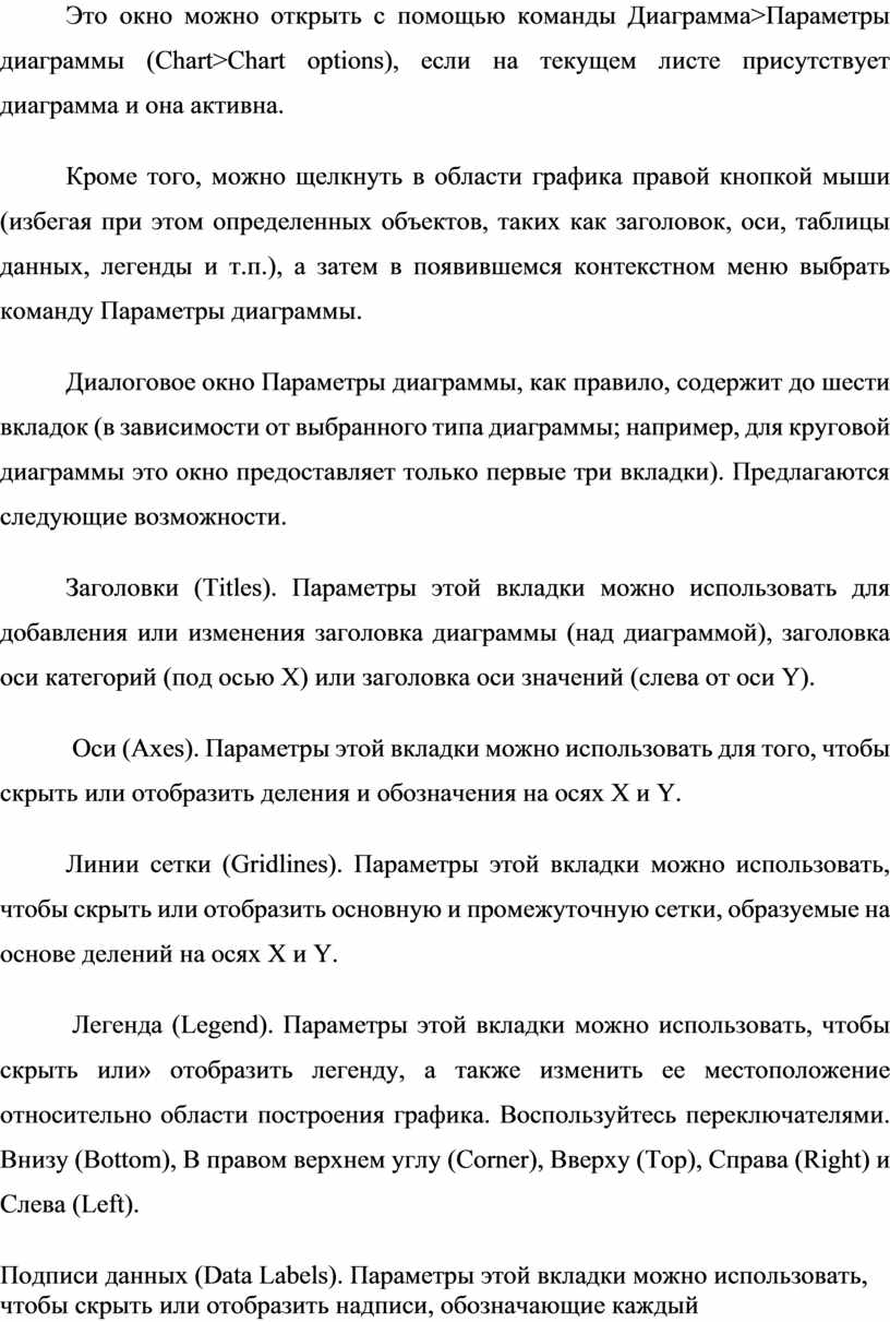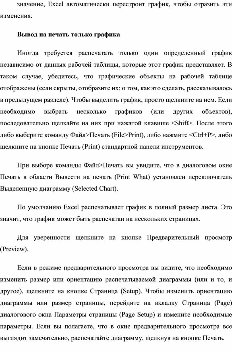 При выборе команды Файл>Печать вы увидите, что в диалоговом окне Печать в области Вывести на печать (Print What) установлен переключатель Выделенную диаграмму (Selected Chart).