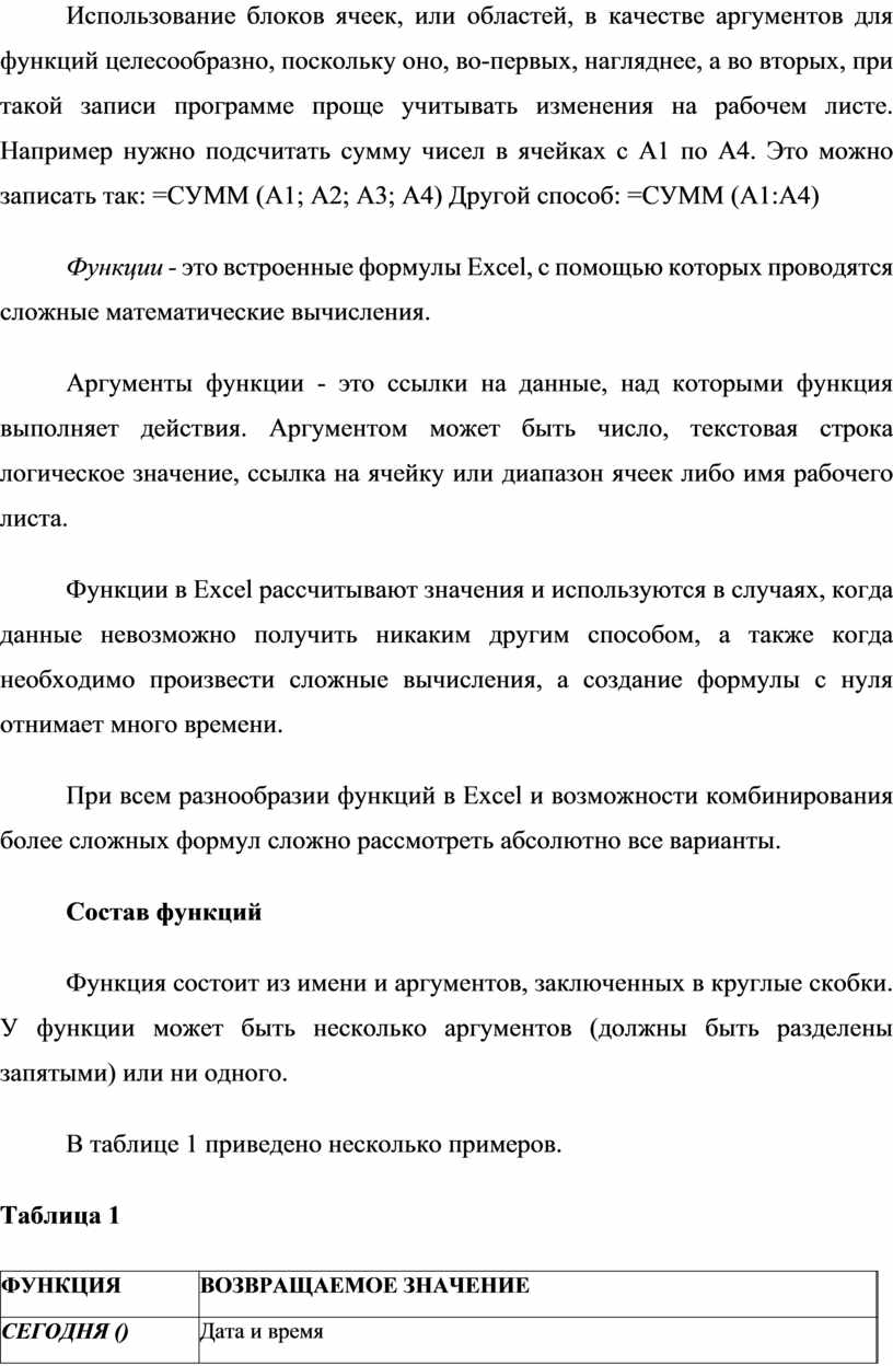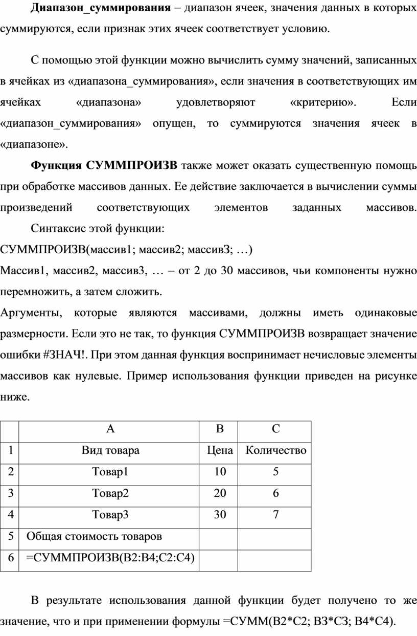 помощь при обработке массивов данных. Ее действие заключается в вычислении