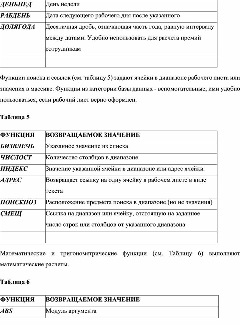 Информационные функции (см. таблицу 2) позволяют узнать о типе данных, хранящихся в ячейках.