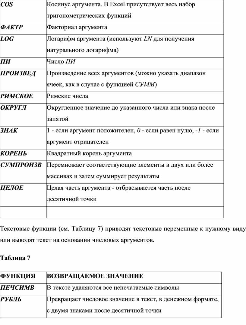 Важная группы функций это логические функции (см. Таблица 3).