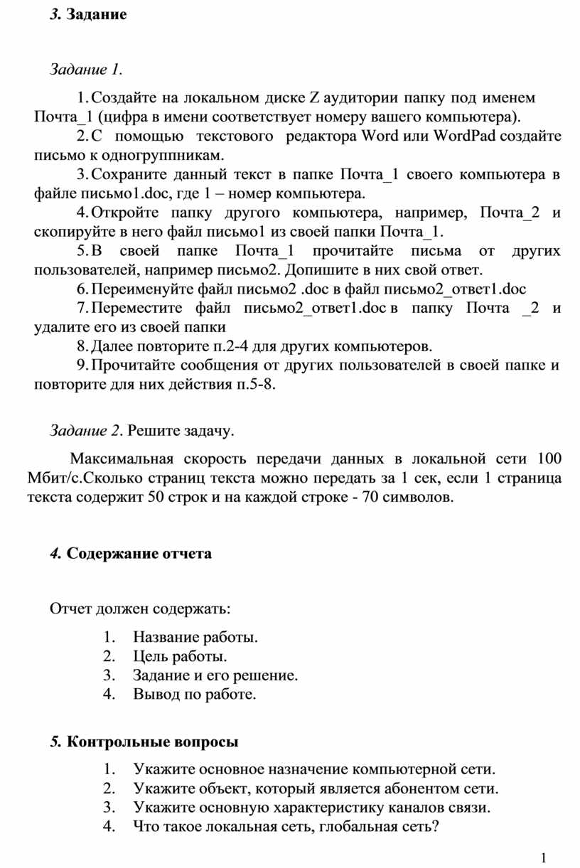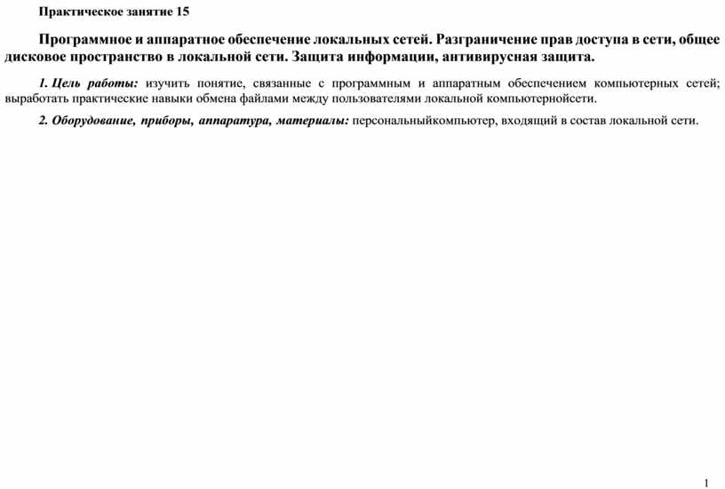 2. Оборудование, приборы, аппаратура, материалы: персональный компьютер, входящий в состав локальной сети.