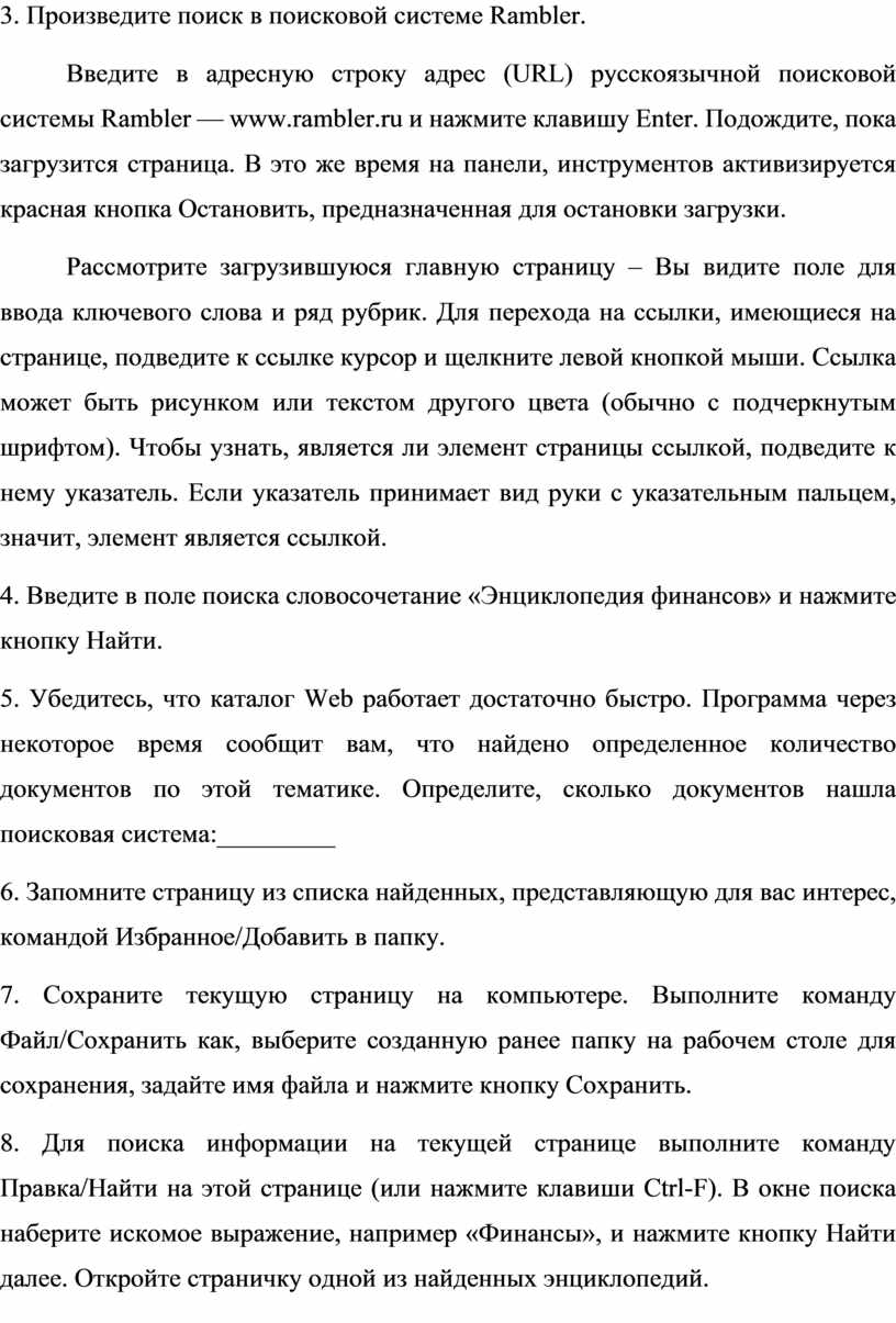 8. Для поиска информации на текущей странице выполните команду Правка/Найти на этой странице (или нажмите клавиши Ctrl-F). В окне поиска наберите искомое выражение, например «Финансы», и нажмите кнопку Найти далее. Откройте страничку одной из найденных энциклопедий.