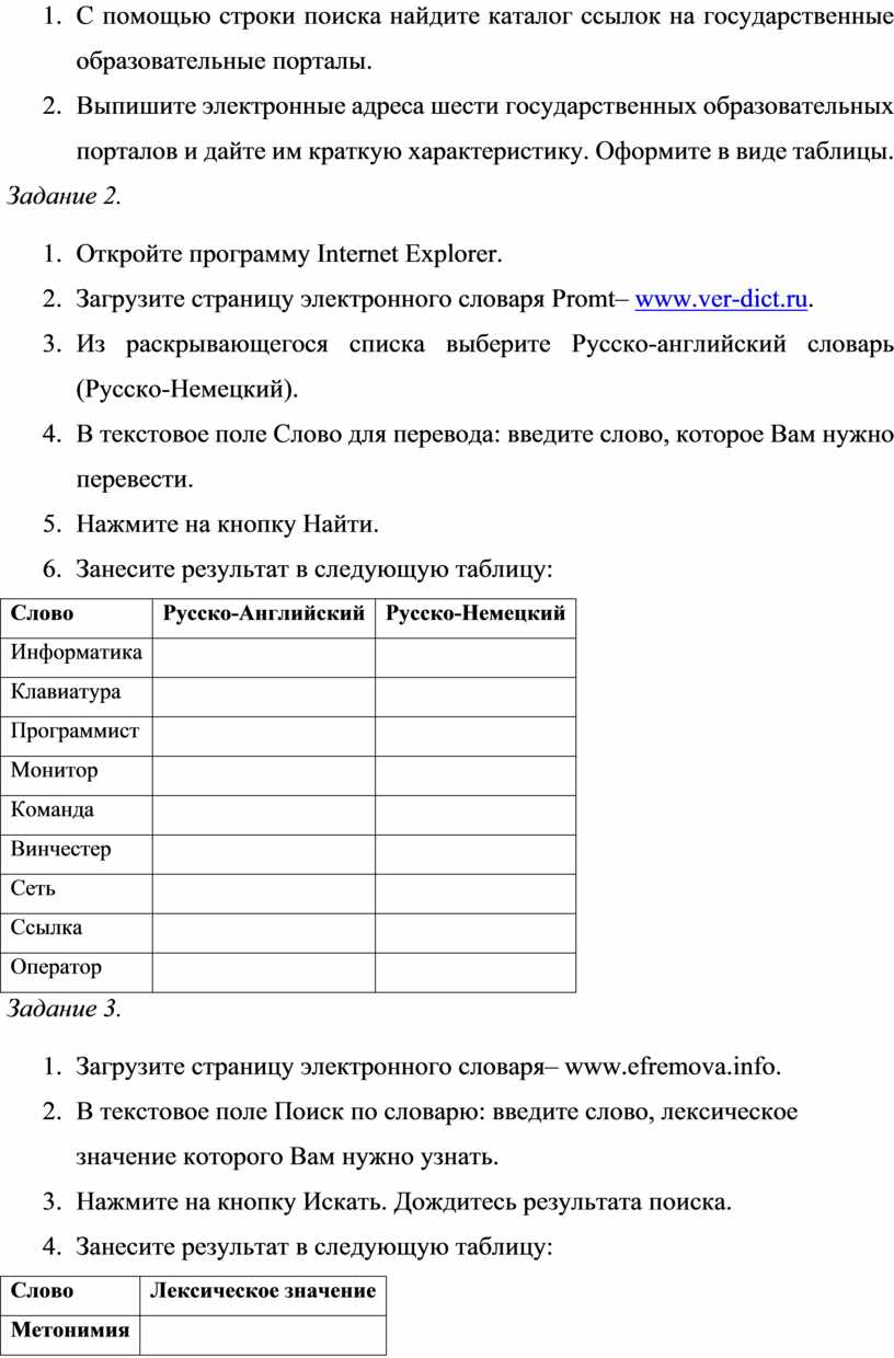 3. Выпишите электронные адреса шести государственных образовательных порталов и дайте им краткую характеристику. Оформите в виде таблицы.