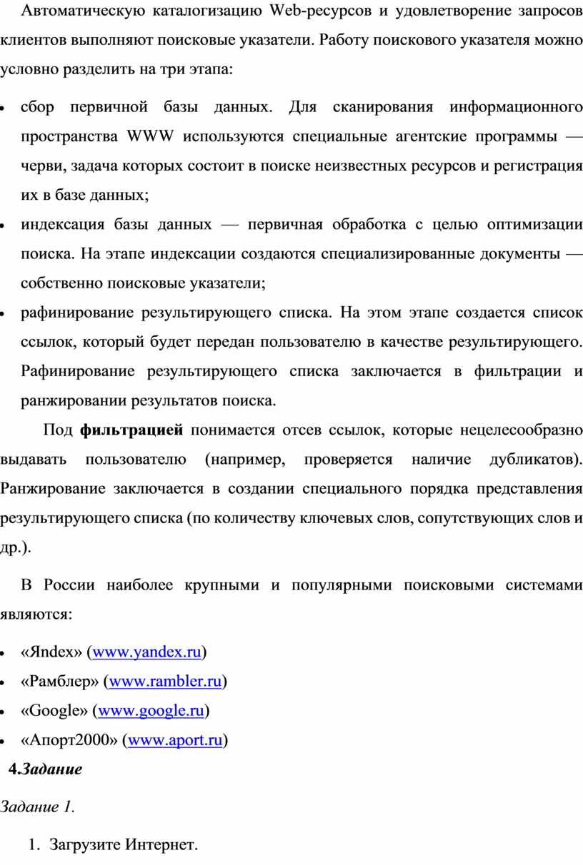 Краткая справка. Наиболее популярными русскоязычными поисковыми системами являются: