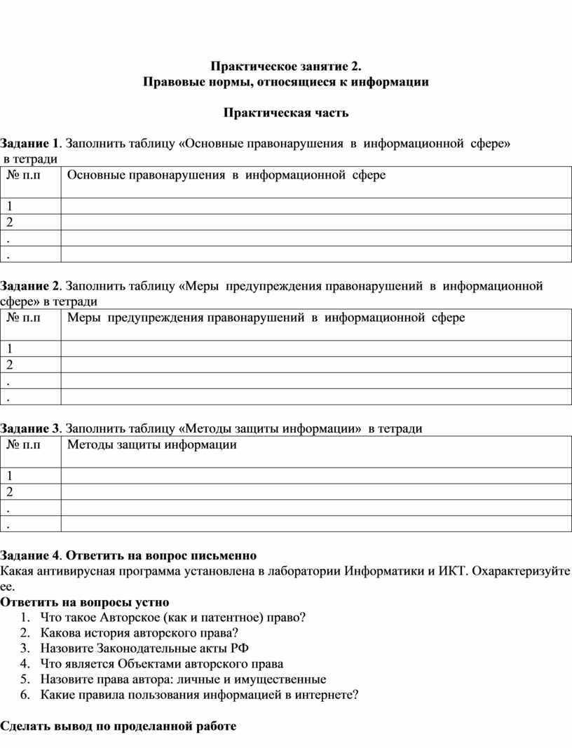 Задание 2. Заполнить таблицу «Меры предупреждения правонарушений в информационной сфере» в тетради