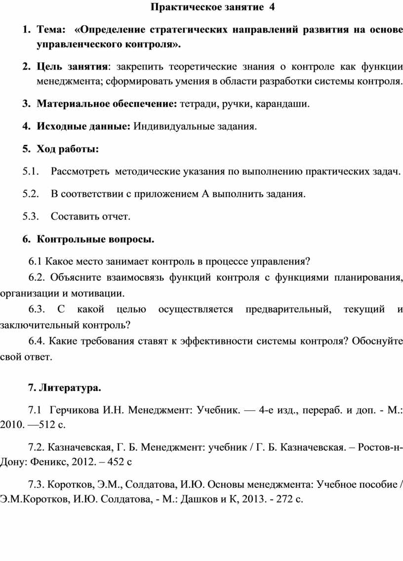 7.1 Герчикова И.Н. Менеджмент: Учебник. — 4-е изд., перераб. и доп. - М.: 2010. —512 с.