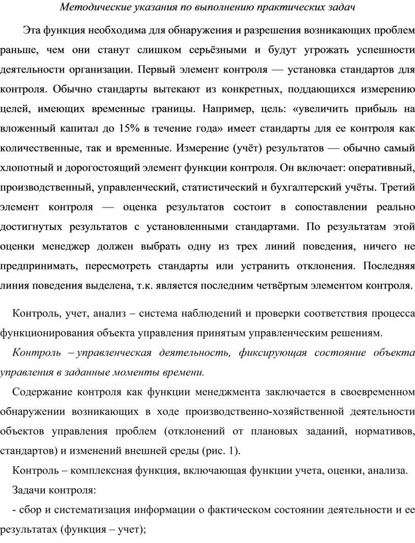 Содержание контроля как функции менеджмента заключается в своевременном обнаружении возникающих в ходе производственно-хозяйственной деятельности объектов управления проблем (отклонений от плановых заданий, нормативов, стандартов) и изменений внешней среды (рис. 1).