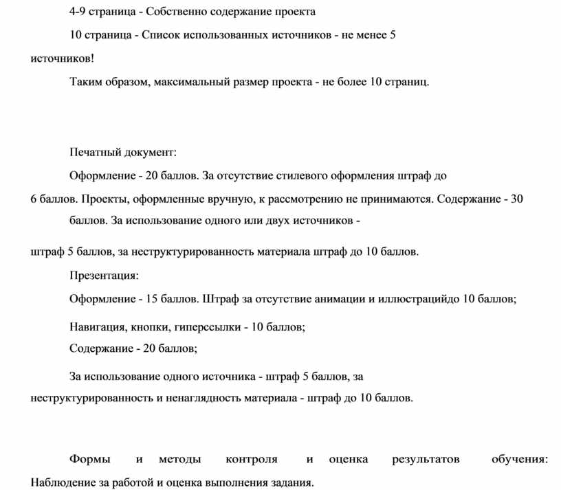 6 баллов. Проекты, оформленные вручную, к рассмотрению не принимаются. Содержание - 30 баллов. За использование одного или двух источников -
