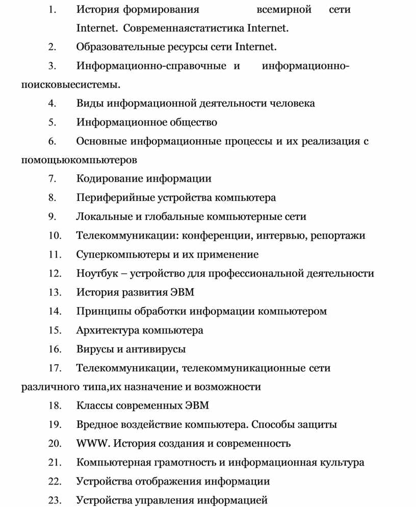 Тема может быть выбрана студентом самостоятельно из приведенного перечня..