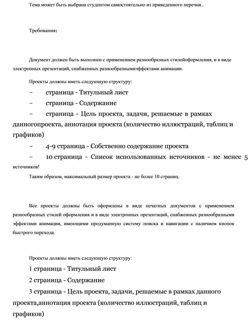 Таким образом, максимальный размер проекта - не более 10 страниц.