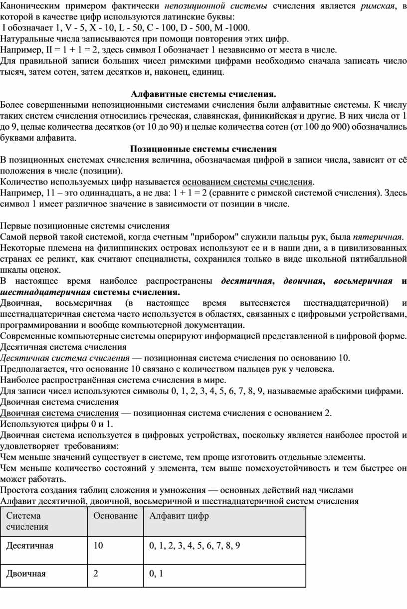 Позиционные системы счисления