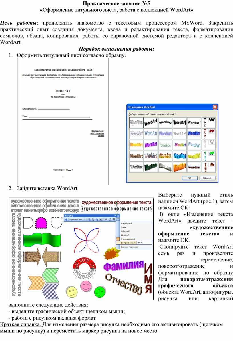 «Оформление титульного листа, работа с коллекцией WordArt»