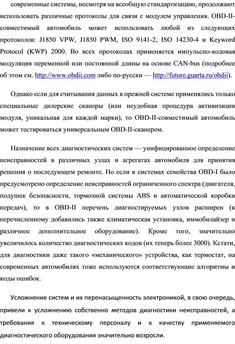 Усложнение систем и их перенасыщенность электроникой, в свою очередь, привели к усложнению собственно методов диагностики неисправностей, а требования к техническому персоналу и к качеству применяемого диагностического оборудования значительно возросли.