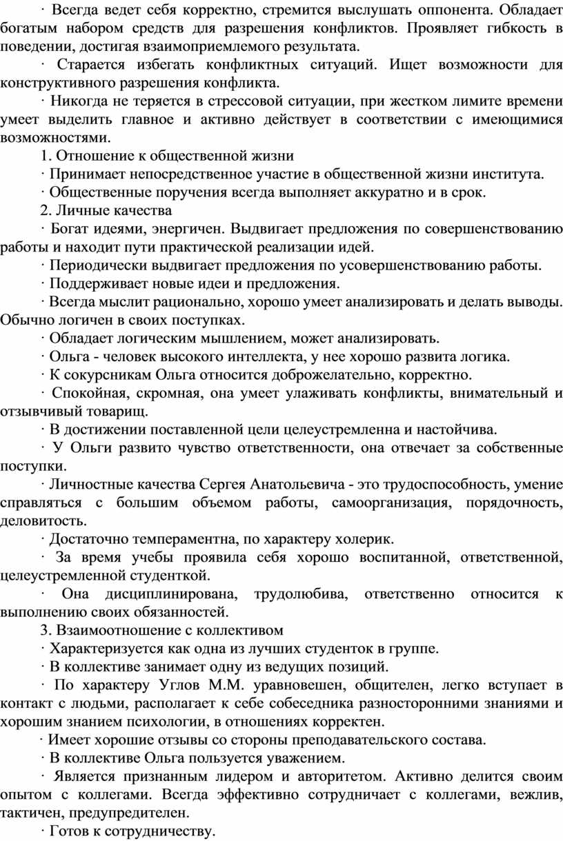 · Характеризуется как трудолюбивая, коммуникабельная студентка.