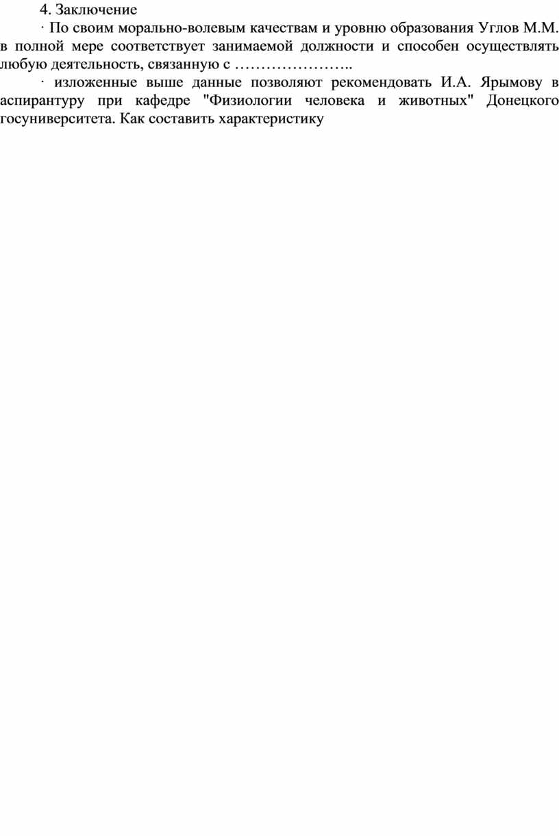 3. Заключительная часть служебной характеристики содержит вывод, в котором указывается назначение характеристики.