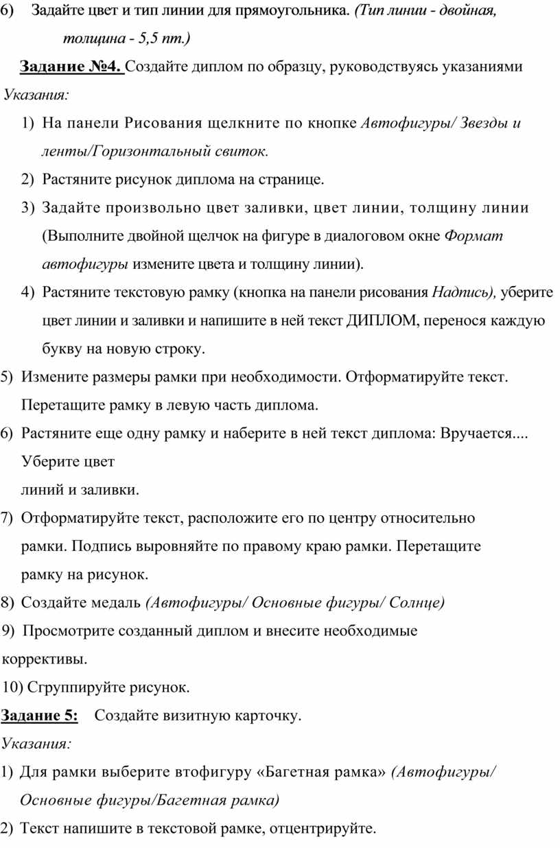 Задание №4. Создайте диплом по образцу, руководствуясь указаниями