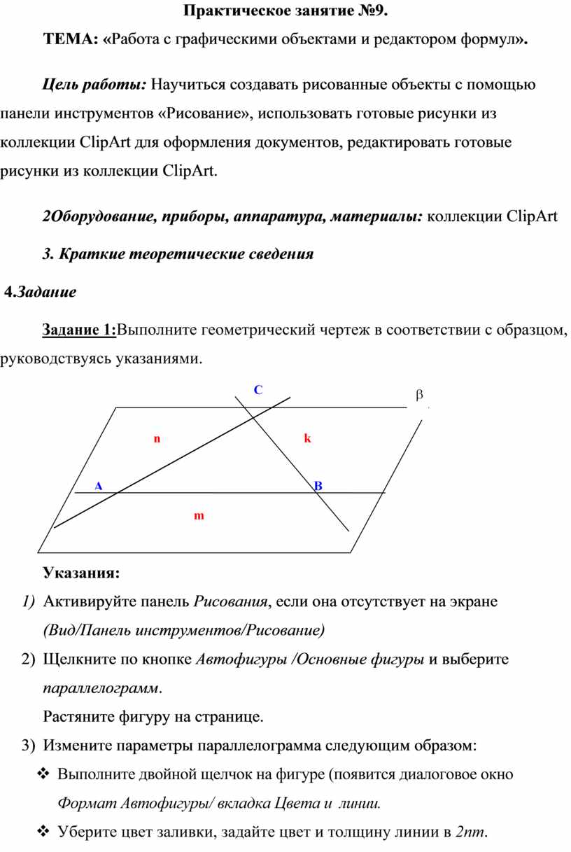 ТЕМА: «Работа с графическими объектами и редактором формул».