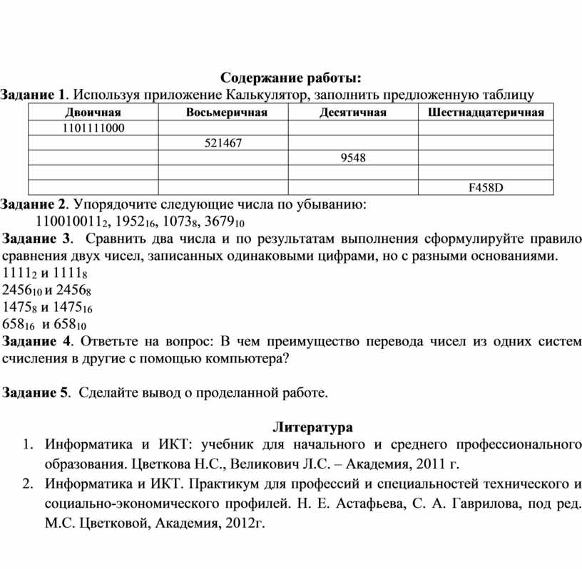Вычисления в позиционных системах счисления с использованием приложения Калькулятор